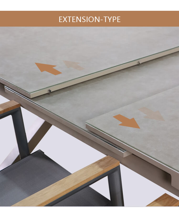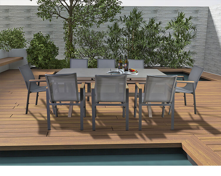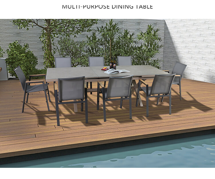 Conjunto de jantar ao ar livre 8 lugares móveis de quintal pátio de hotel mesa de jantar extensível jardim e cadeira